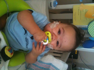Overall, today was good. He was happy and getting back to his normal self. I really hope that his drainage has subsided and he does not need a tube. I'm not sure what he is going to do when he does not have dozens of people to look at all day. But I know he will not be missing the nurses. He has figured out who they are and screams when they even get close to his crib. He's a smart little baby.:)